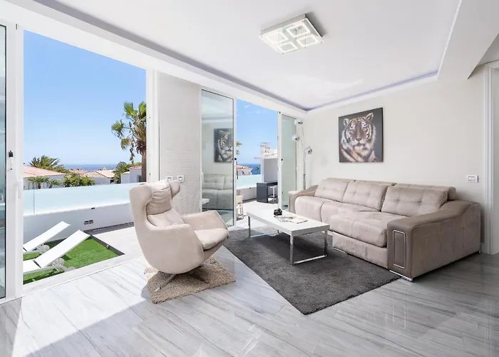 Karat Villa Tee de 298 m^2 se trouve à 5 minutes à pied de Golf del sur et à moins de 25 minutes à pied de Playa Amarilla. En séjournant dans la villa, les clients peuvent bénéficier des détecteurs de fumée, une TV multi-canal, un fer à repasser et une table à repasser fournis dans les chambres.